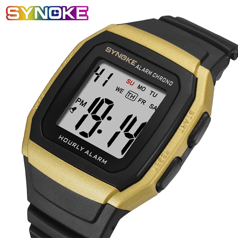 SYNOKE Digital Watch Men Square Simple Fashion Shock Resistant Stop Watch 3Bar Alarm Week Display Man Wristwatch